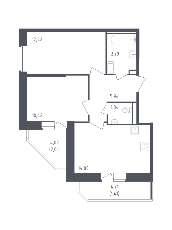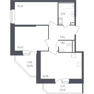 2кквЭтаж 12S общ: 60.76 жил: 24.37 кух: 19.1114 586тыс. руб.