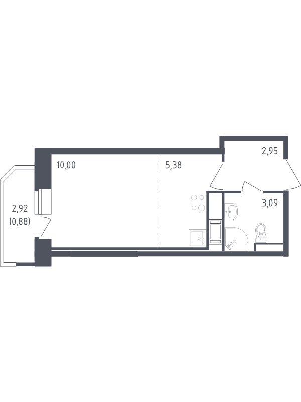 1кквЭтаж 14S общ: 23.69 жил: 10.57 кух: 5.017 424тыс. руб.