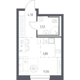 1кквЭтаж 15S общ: 22.06 жил: 10 кух: 3.84 810тыс. руб.