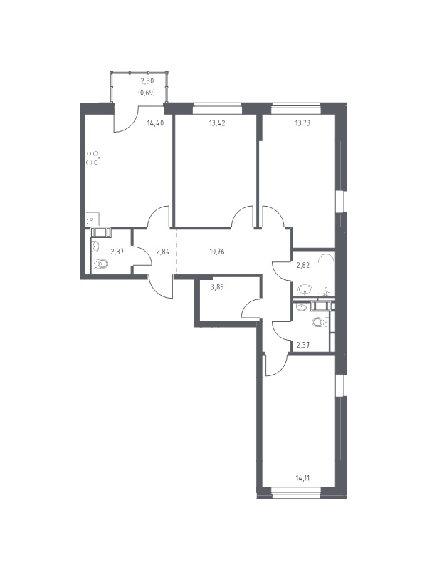3кквЭтаж 11S общ: 77.38 жил: 38.7 кух: 18.421 696тыс. руб.