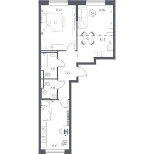 2кквЭтаж 19S общ: 51.62 жил: 23.1 кух: 14.1114 648тыс. руб.